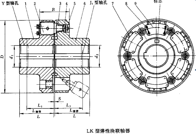 LK型彈性塊聯軸器基本參數和主要尺寸(JB/T9148-99)/mm